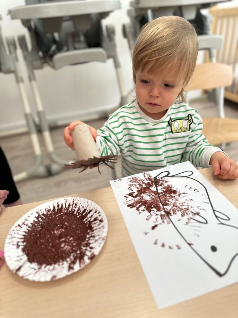 Nasze Liski wykonały swoje własne jeżyki za pomocą tutki po papierze toaletowym i brązowej farby. Wyszły nam śliczne, kolczaste stworzenia!